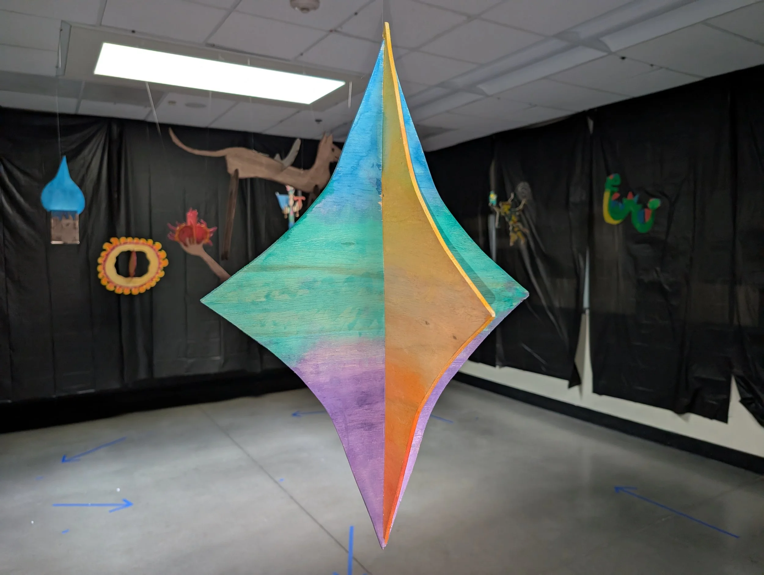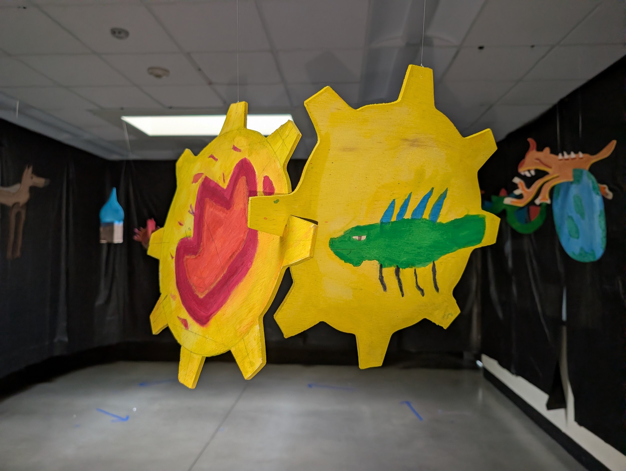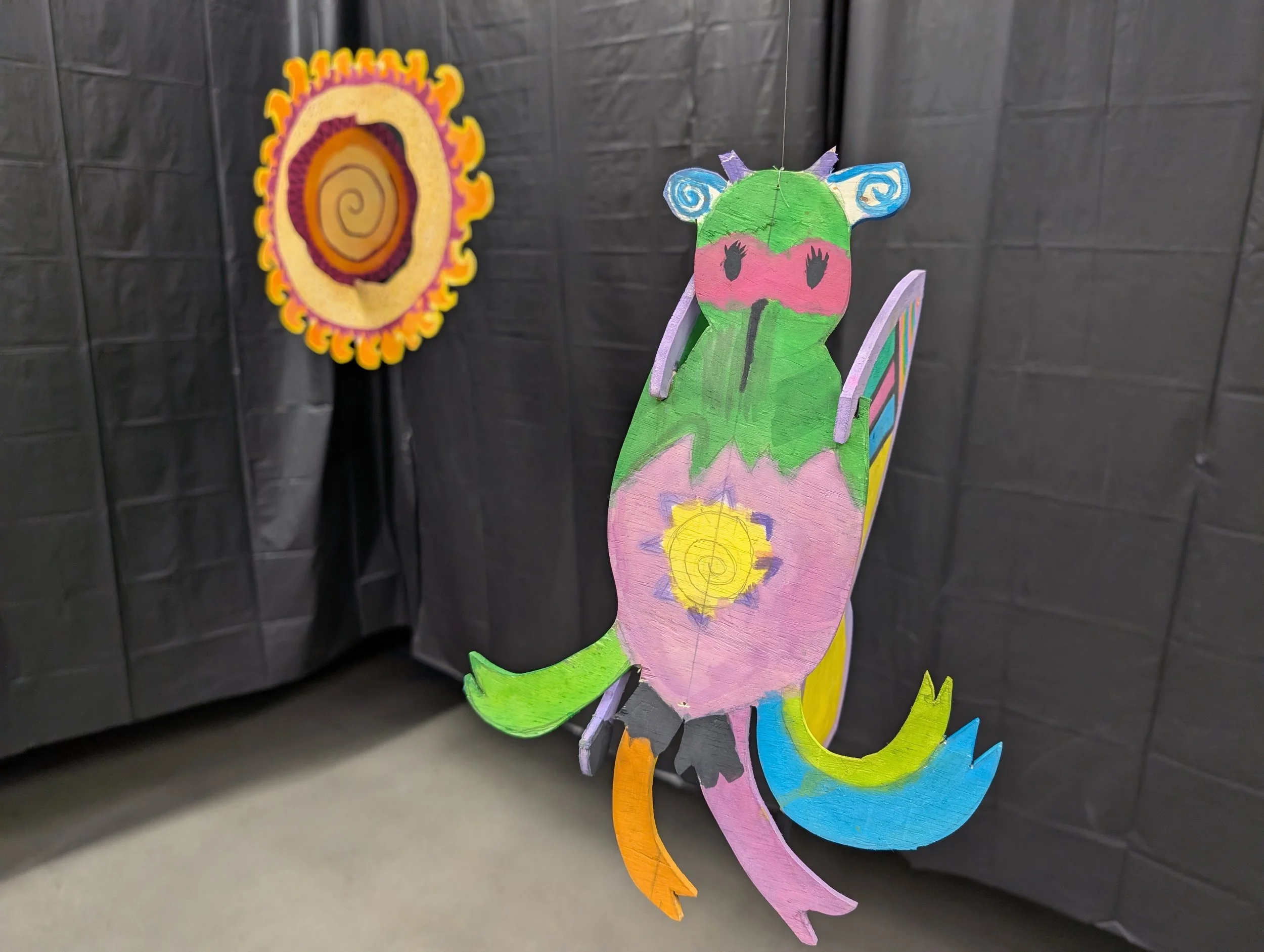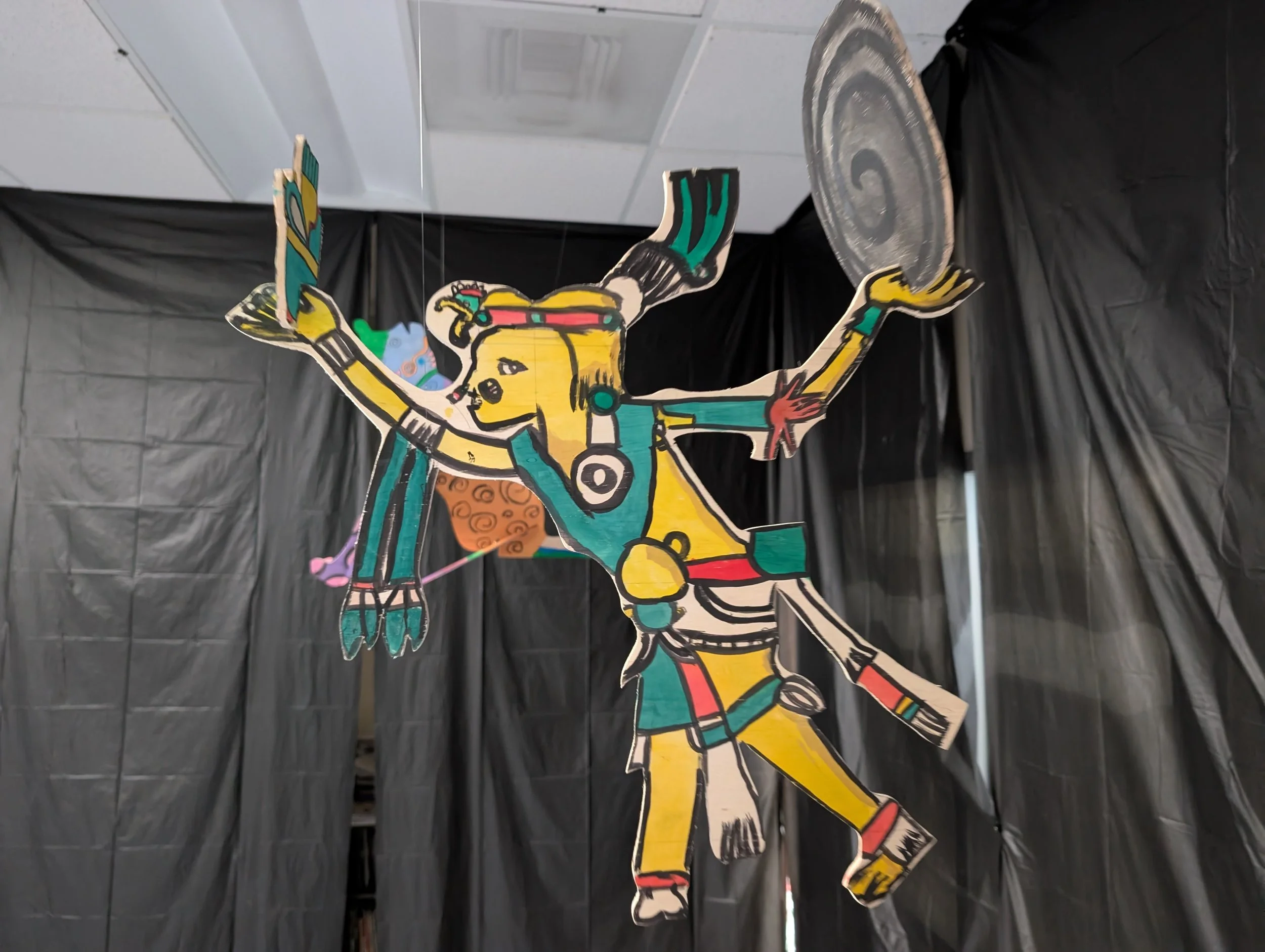 Our class read “Feathered Serpent, Dark Heart of Sky,” David Bowles’ beautiful rendering of the Aztec origin story. Students then identified symbols of the major themes within the story and created 3-dimensional representations of them using quarter inch plywood.